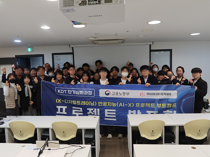 [종로점] K-디지털트레이닝 '인공지능(AI-X) 프로젝트 부트캠프' 수료식 안녕하세요.하이미디어 아카데미 강남캠퍼스에서 진행되었던'KDT 단기심화과정' K-디지털트레이닝 인공지능(AI-X) 프로젝트 부트캠프' 과정프로젝트 발표회 및 수료식이지난 11월 10일에 있었습니다. 감사합니다.